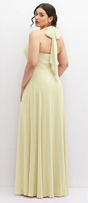 Chiffon Convertible Maxi Dress with Multi-Way Tie Straps in butter yellow