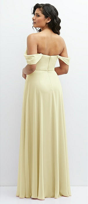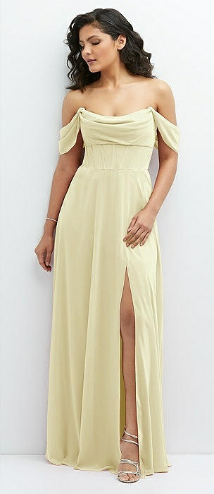 Chiffon Corset Maxi Dress with Removable Off-the-Shoulder Swags in butter yellow