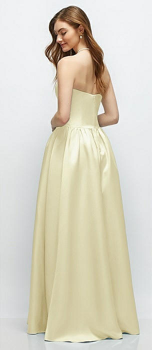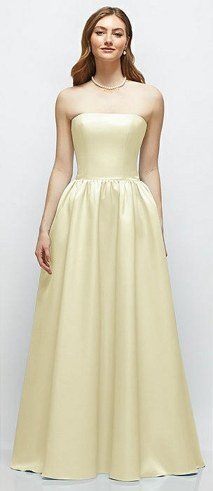 Strapless Satin Drop Waist Gown with Full Skirt in butter yellow