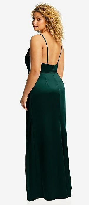Cowl-Neck Draped Wrap Maxi Dress with Front Slit in evergreen
