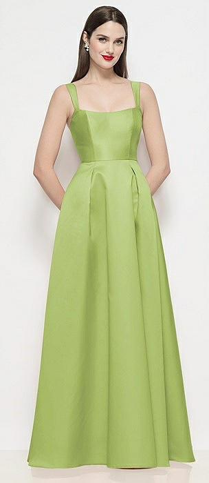 Shaped Strap Basque Neck Satin Maxi Dress with Pleated Skirt in mojito