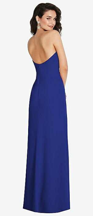 Strapless Scoop Back Maxi Dress with Front Slit in cobalt blue