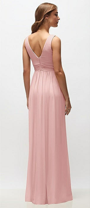 Sleeveless Draped Chiffon Maxi Dress with Front Slit in rose