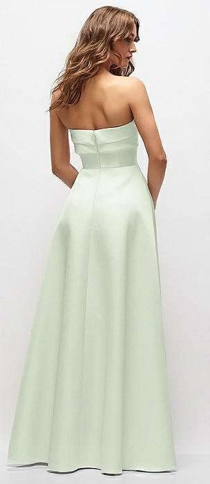 Strapless Twist Cuff Neck Satin Maxi Dress with Basque-Waist & Full Skirt in mint green