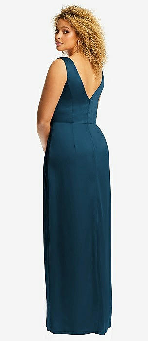 Shirred Shoulder Criss Cross Back Maxi Dress with Front Slit in atlantic blue
