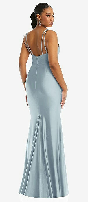 Deep V-Neck Stretch Satin Mermaid Dress with Slight Train in mist