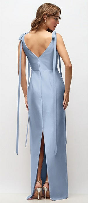 Bateau Neck Satin Column Maxi Dress with Exaggerated Tail Bow Straps in cloudy