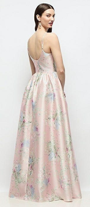 Scoop Neck Drop Basque Skirt Esme Floral Satin Maxi Dress with Pockets in esme floral