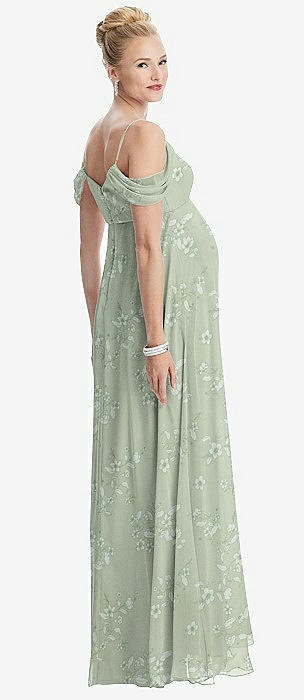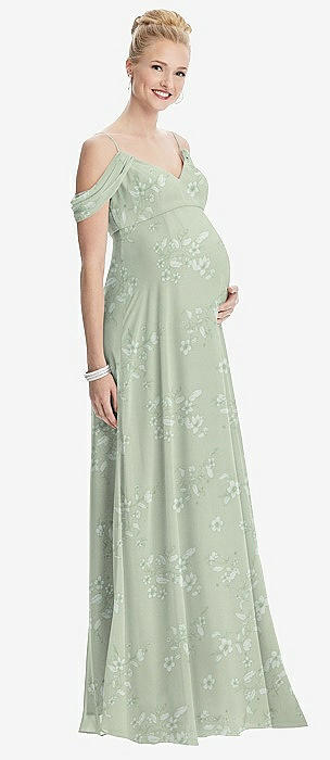 Draped Cold-Shoulder Chiffon Maternity Dress in vintage primrose sage