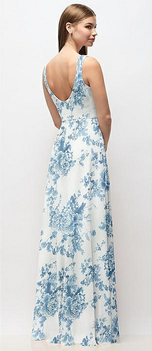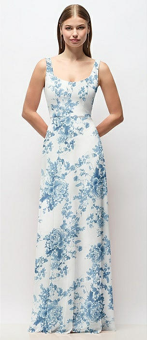 Scoop Neck Tank Strap Floral Chiffon Maxi Dress in cottage rose dusk blue