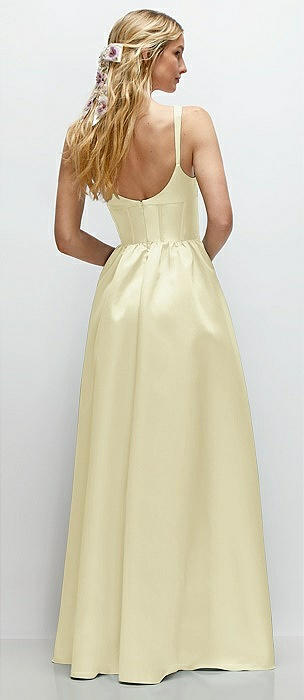 Scoop Neck Inset Corset Satin Maxi Dress with Pockets in butter yellow