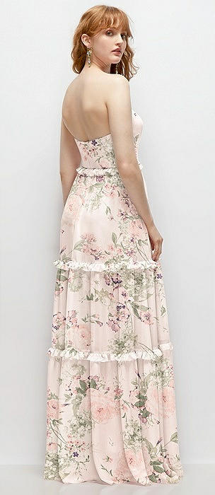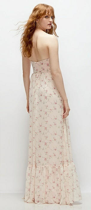 Bustier-Style Chiffon Tiered Ruffle Maxi Dress with Adjustable Straps in coquette floral print
