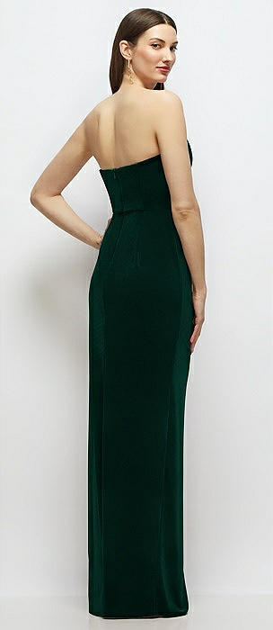 Strapless Corset Bodice Velvet Column Maxi Dress in evergreen