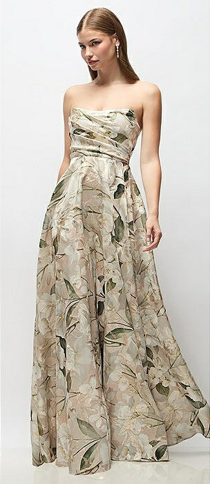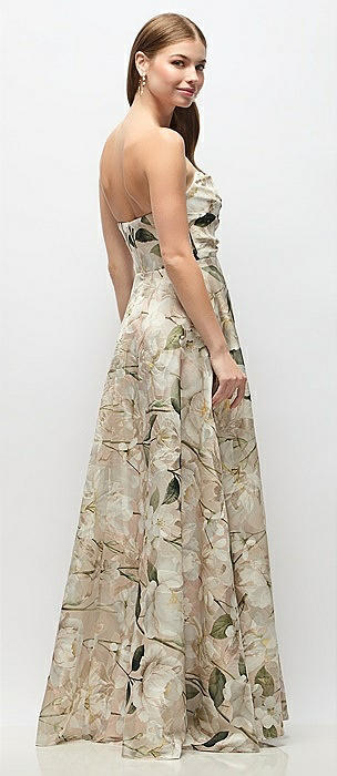 Strapless Metallic Organza Jacquard Maxi Dress with Draped Cat-Eye Bodice