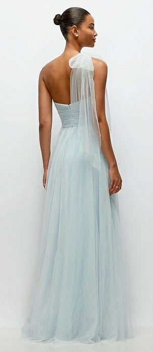 Scarf Tie One-Shoulder Tulle Maxi Dress with Full Skirt in mist
