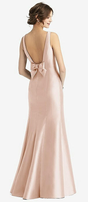 Sleeveless Satin Trumpet Gown with Bow at Open-Back in cameo