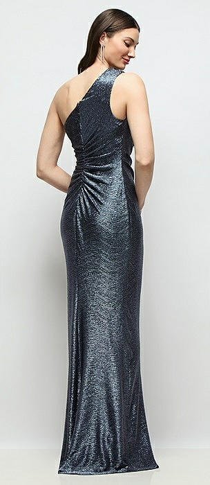 One-Shoulder Soho Metallic Ruched Waist Gown