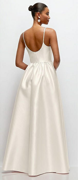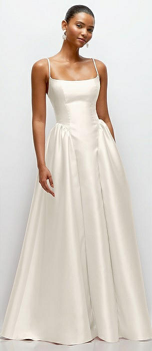 Scoop Neck Drop Basque Skirt Satin Maxi Dress with Pockets in ivory
