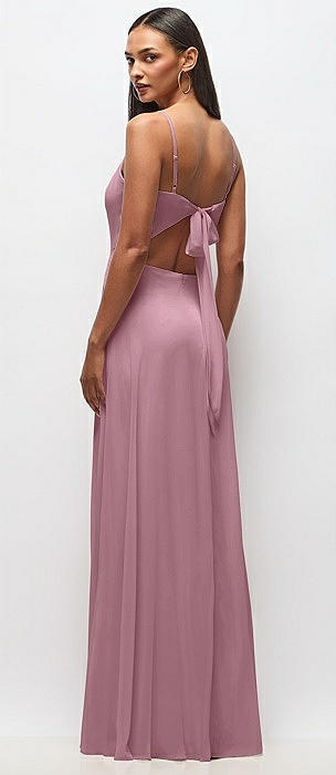 Tie-Back Cutout Maxi Dress with Front Slit in dusty pink