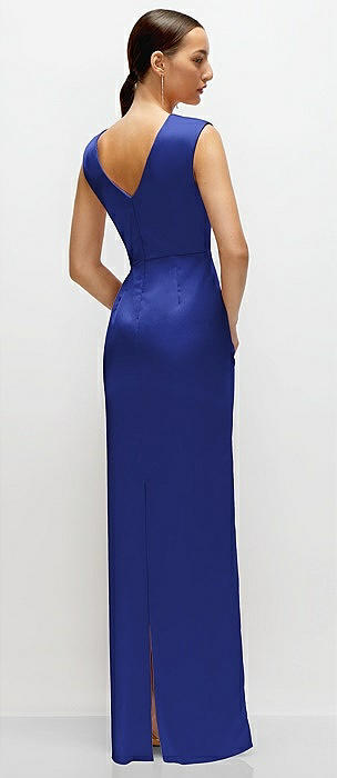 High Neck Sleeveless Cap Shoulder Satin Maxi Dress in cobalt blue
