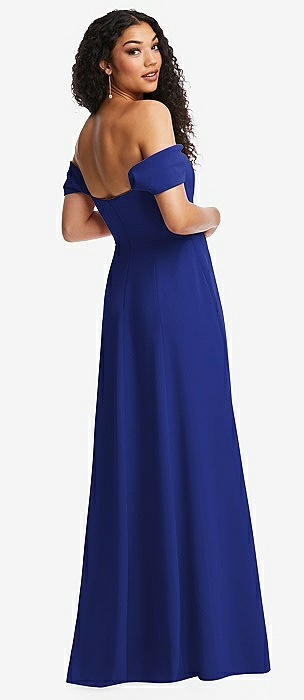 Off-the-Shoulder Pleated Cap Sleeve A-line Maxi Dress in cobalt blue