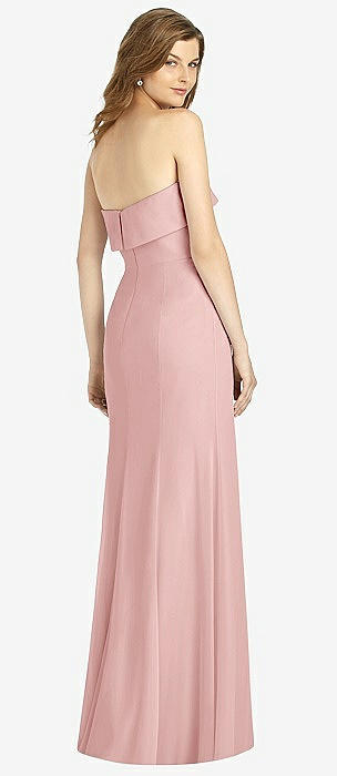 Strapless Pleated Faux Wrap Trumpet Gown with Front Slit in powder pink