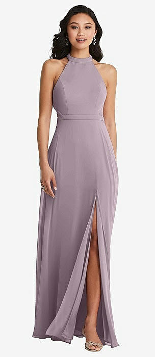 Stand Collar Halter Maxi Dress with Criss Cross Open-Back in lilac dusk