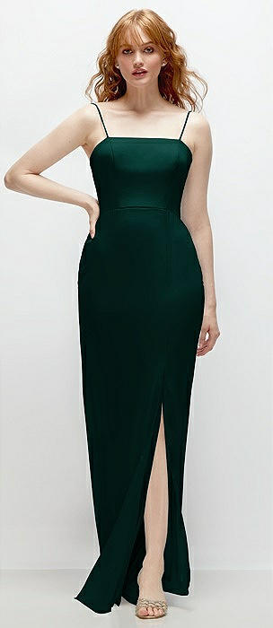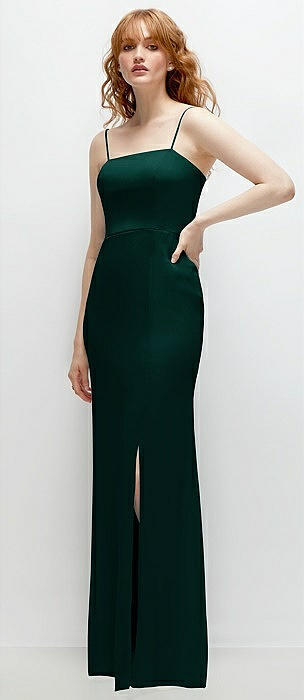 Tie-Back Cutout Trumpet Gown with Front Slit in evergreen