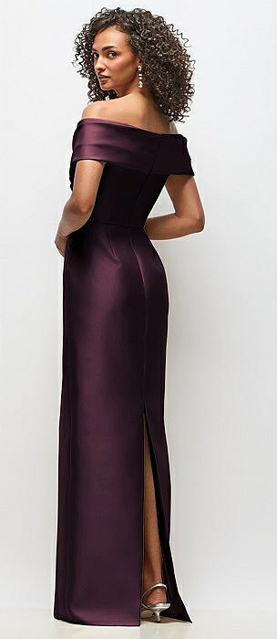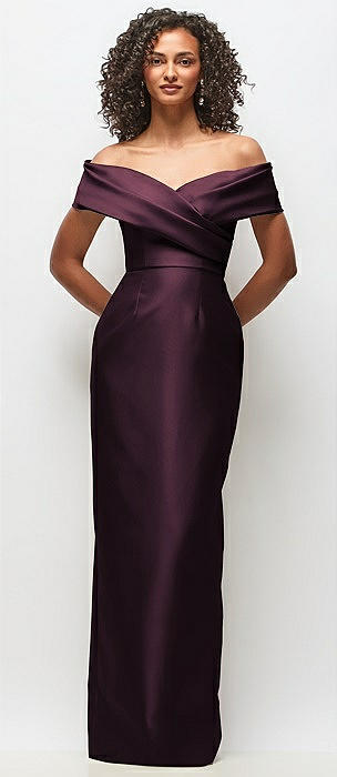 Draped Wrap Off-the-Shoulder Satin Column Floral Maxi Dress