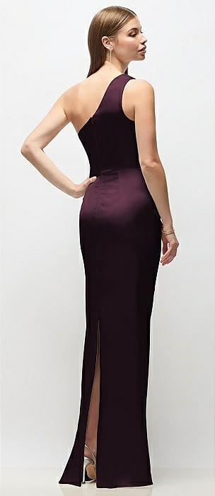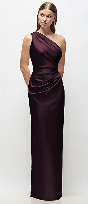 One-Shoulder Draped Bodice Stretch Satin Column Maxi Dress