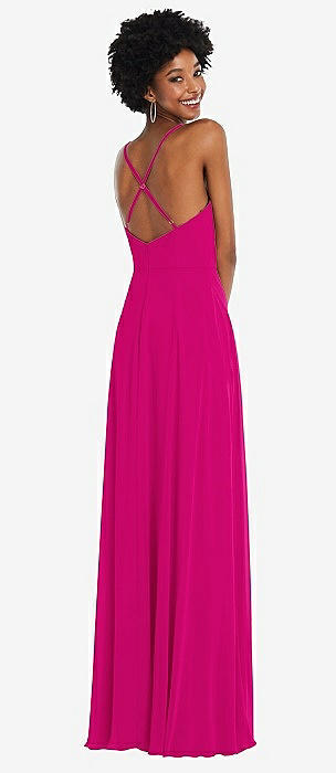 Faux Wrap Criss Cross Back Maxi Dress with Adjustable Straps in think pink