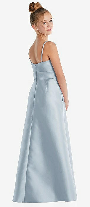 Spaghetti Strap Satin Junior Bridesmaid Dress with Mini Sash in mist