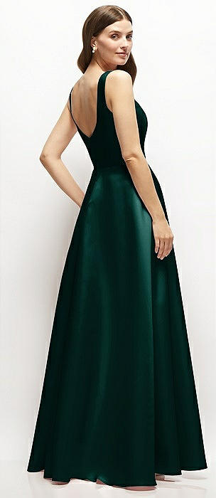 Square-Neck Satin Maxi Dress with Full Skirt in evergreen