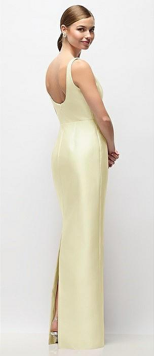 Scoop Neck Inset Corset Satin Maxi Dress with Pockets in butter yellow