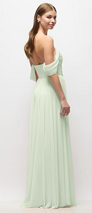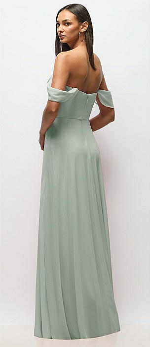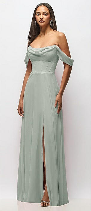 Chiffon Corset Maxi Dress with Removable Off-the-Shoulder Swags in willow green