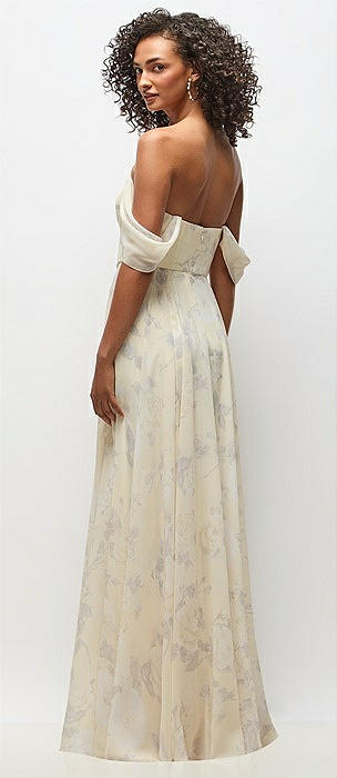 Off-the-Shoulder Basque Corset Floral Chiffon Maxi Dress in butter yellow floral
