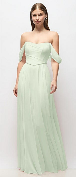 Off-the-Shoulder Basque Corset Chiffon Maxi Dress in mint green