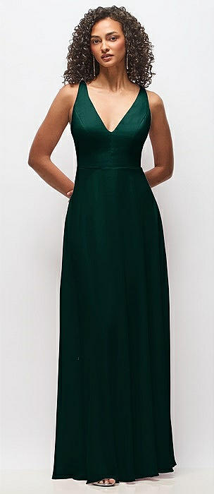 Deep V-Neck Chiffon Maxi Dress in evergreen