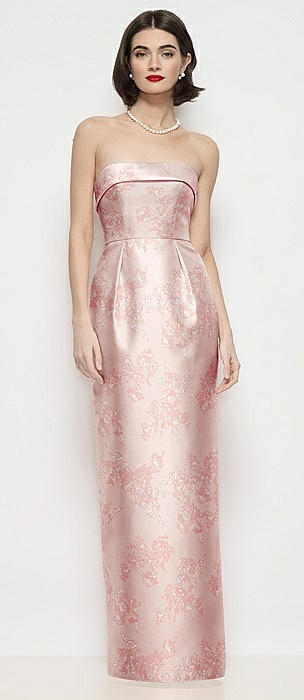 Strapless Abstract Floral Jacquard Column Dress with Back Slit in peridot blush