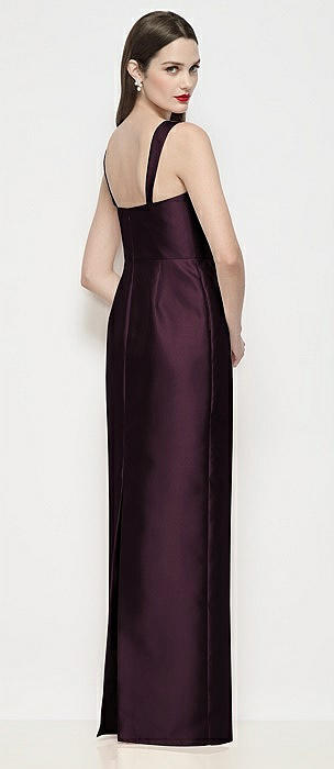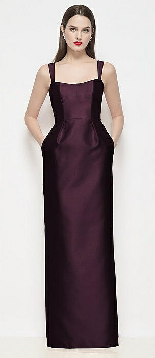 Shaped Strap Basque Neck Satin Maxi Dress with Column Skirt in deep plum