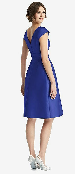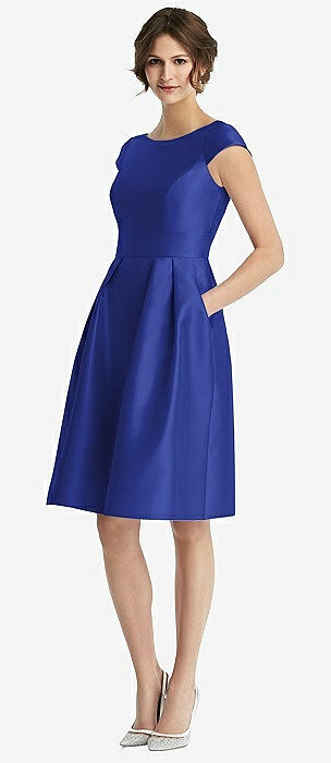 Cap Sleeve Pleated Cocktail Dress with Pockets in cobalt blue
