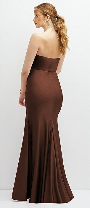 Strapless Basque-Neck Draped Stretch Satin Mermaid Dress with Horsehair Hem in cognac