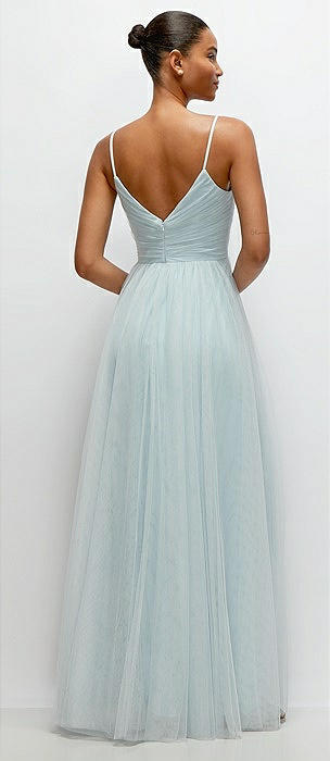 Ruched Wrap Bodice Tulle Maxi Dress with Full Skirt in mist