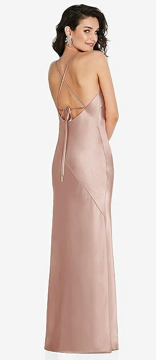 V-Neck Halter Satin Trumpet Gown in suede rose