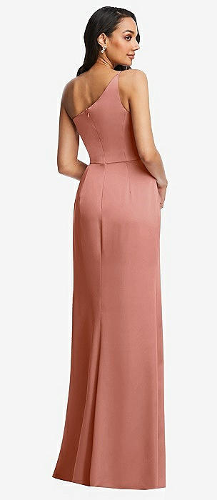 One-Shoulder Draped Skirt Satin Trumpet Gown in desert rose