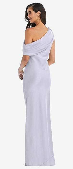 Draped One-Shoulder Convertible Maxi Slip Dress in silver dove
