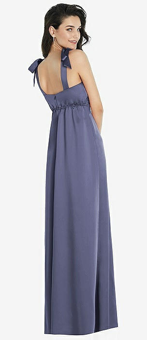 Flat Tie-Shoulder Empire Waist Maxi Dress with Front Slit in french blue
