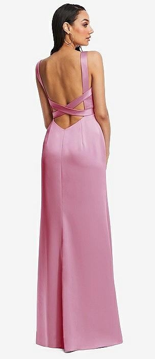 Framed Bodice Criss Criss Open Back A-Line Maxi Dress in powder pink
