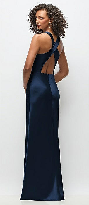 Cowl Neck Criss-Cross Back Satin Maxi Dress in midnight navy