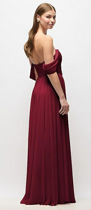 Chiffon Corset Maxi Dress with Removable Off-the-Shoulder Swags in burgundy
